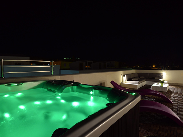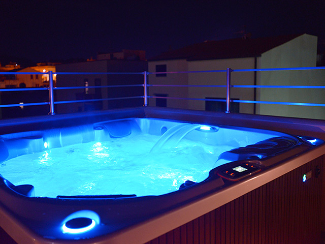 Ha posto auto privato, terrazza solarium ad uso esclusivo attrezzata con salottino, sdraio a dondolo e vasca idromassaggio SPA riscaldata, Wi-Fi flat.