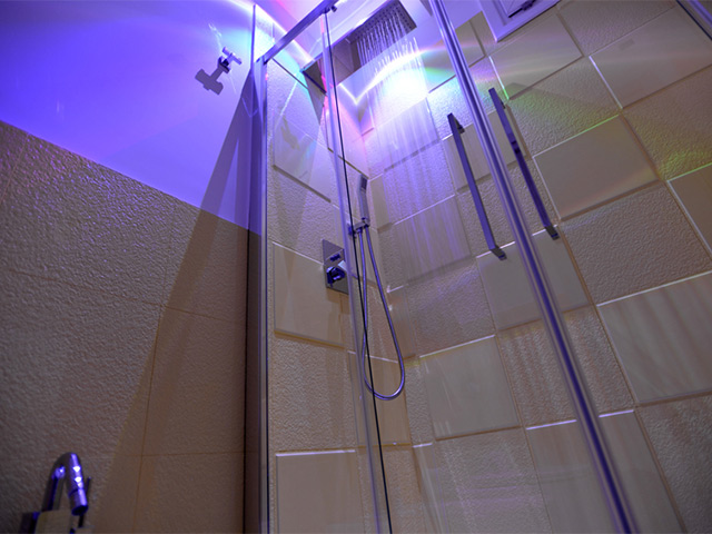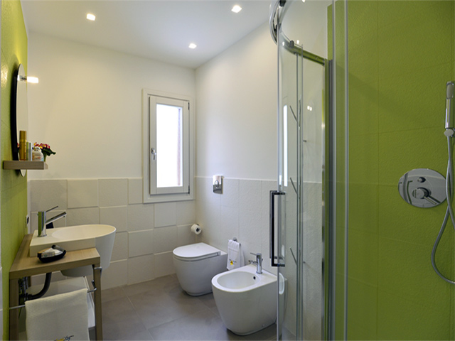 E' composto da due camere da letto matrimoniali, due bagni con doccia emozionale con cromoterapia, cucina soggiorno con divano letto matrimoniale. Ha finiture di livello superiore e arredi eleganti di qualità italiana.