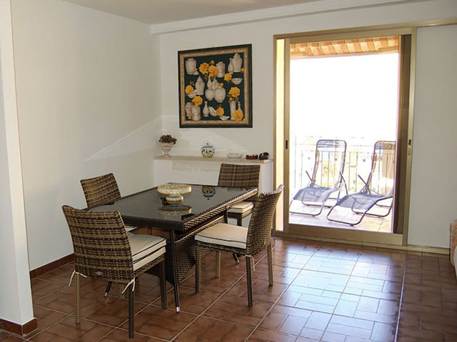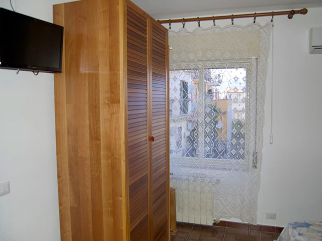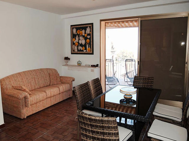 In the dining area there is a table with chairs and a comfortable sofa bed for one person. The living room has exit to the small covered terrace with sea view, equipped with deck chairs to enjoy relaxing moments.