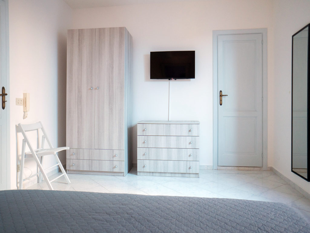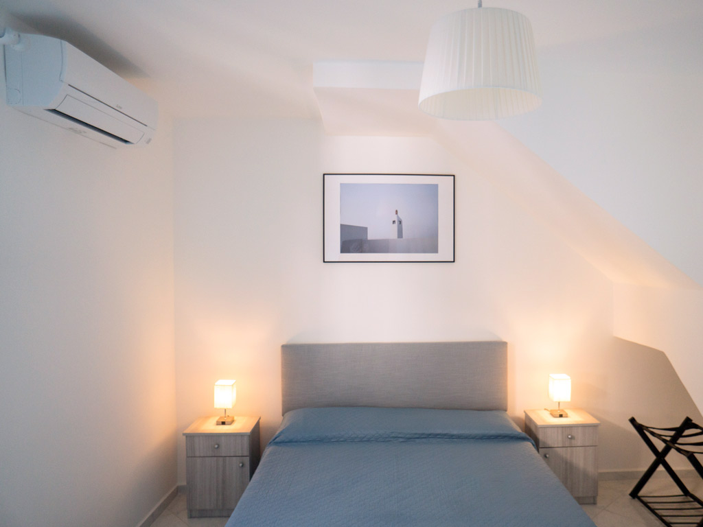 "Casa Pina A" si sviluppa tra il primo e secondo piano ed è composta da una camera con letto matrimoniale con balcone e vista sul vicolo di accesso, Aria condizionata. Il bagno ha box doccia, doccetta bidet e finestra alta.