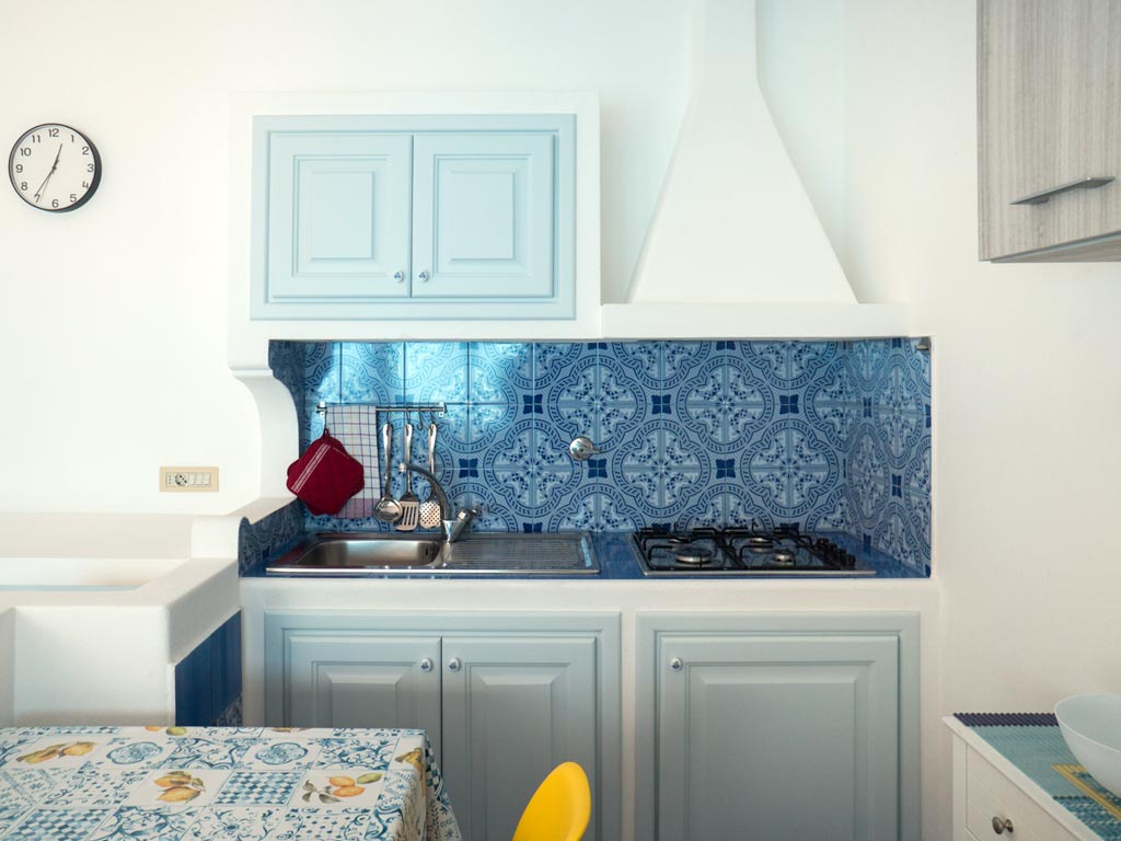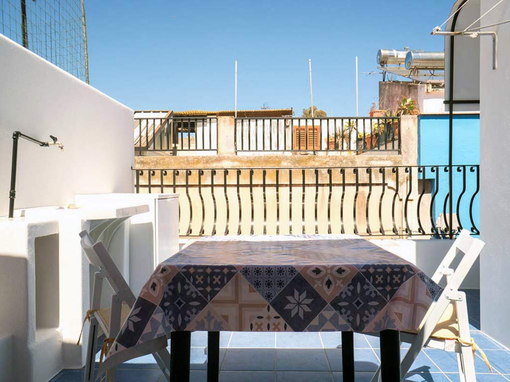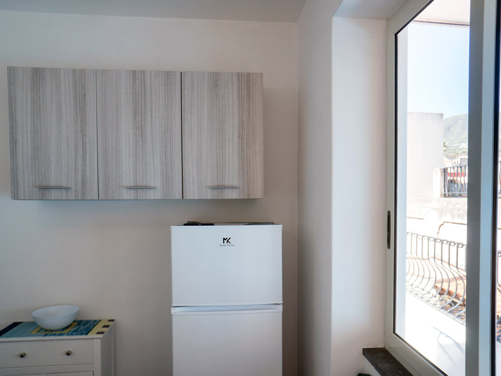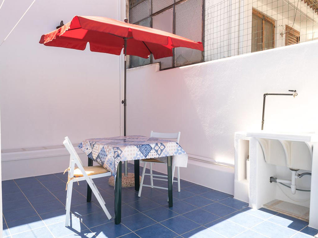 On the same level, in addition to the kitchen-dining area, there is also a small terrace equipped with table, chairs, umbrella that will allow you to enjoy moments of relaxation during your holiday. Also on the terrace there is a sink with the washing machine next to it.