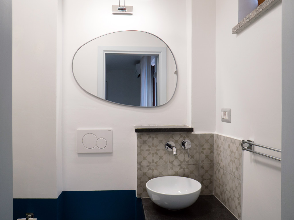 "Casa Pina A" develops between the first and second floors and consists of a bedroom with double bed with balcony and a view of the access alley. The bathroom has a shower, bidet shower and high window.