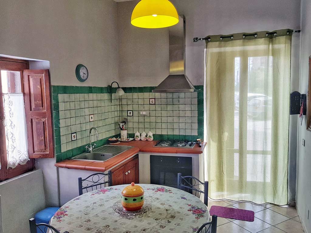 Ha ingresso dalla Piazza Mazzini in un soggiorno con angolo cottura attrezzato con tutti i pezzi e utensili, tavolo, sedie e Tv.