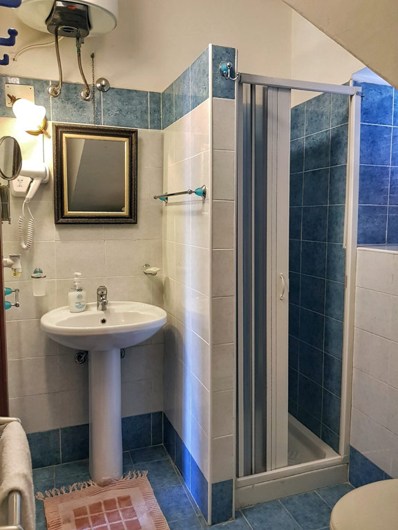 Il bagno completo di tutti i sanitari ha box doccia e asciuga capelli.