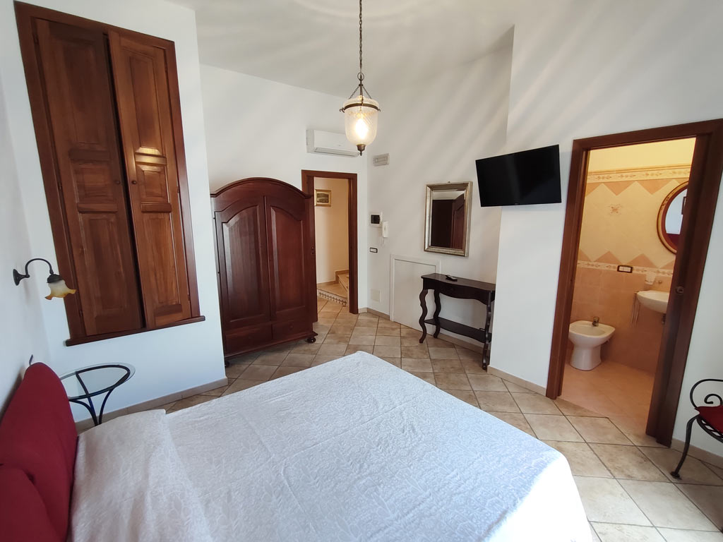 Al secondo piano si trova la seconda camera matrimoniale con balcone vista mare e wc interno completo di tutti i sanitari e con box doccia.