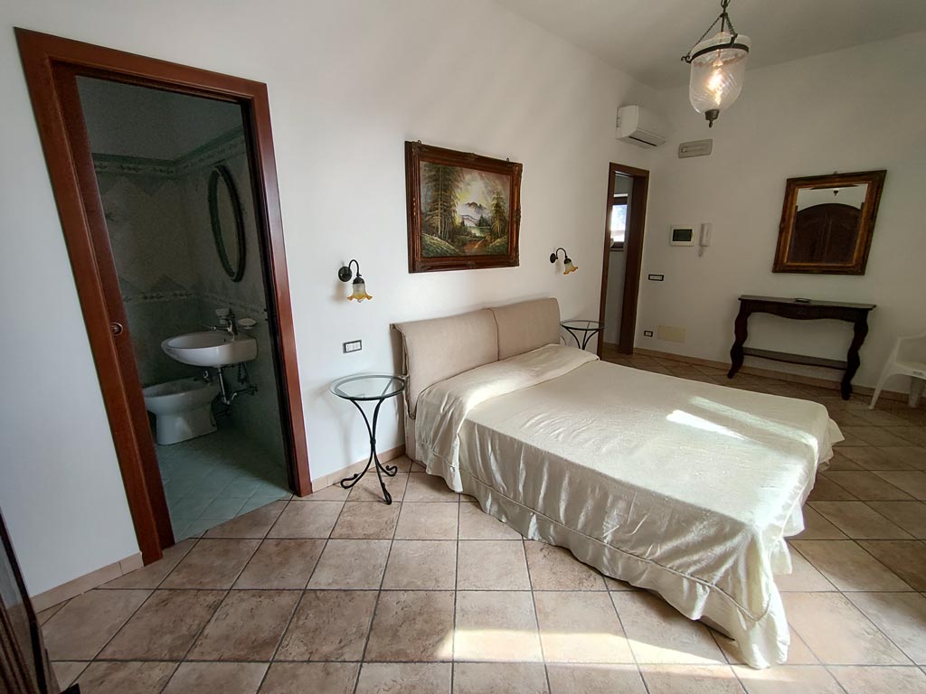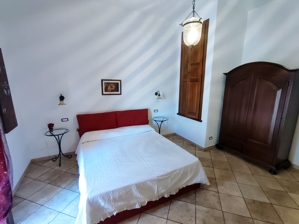 Al primo piano si trova la prima camera da letto matrimoniale con balcone che da sulla piazzetta; la camera è servita da bagno completo con box doccia e finestra.