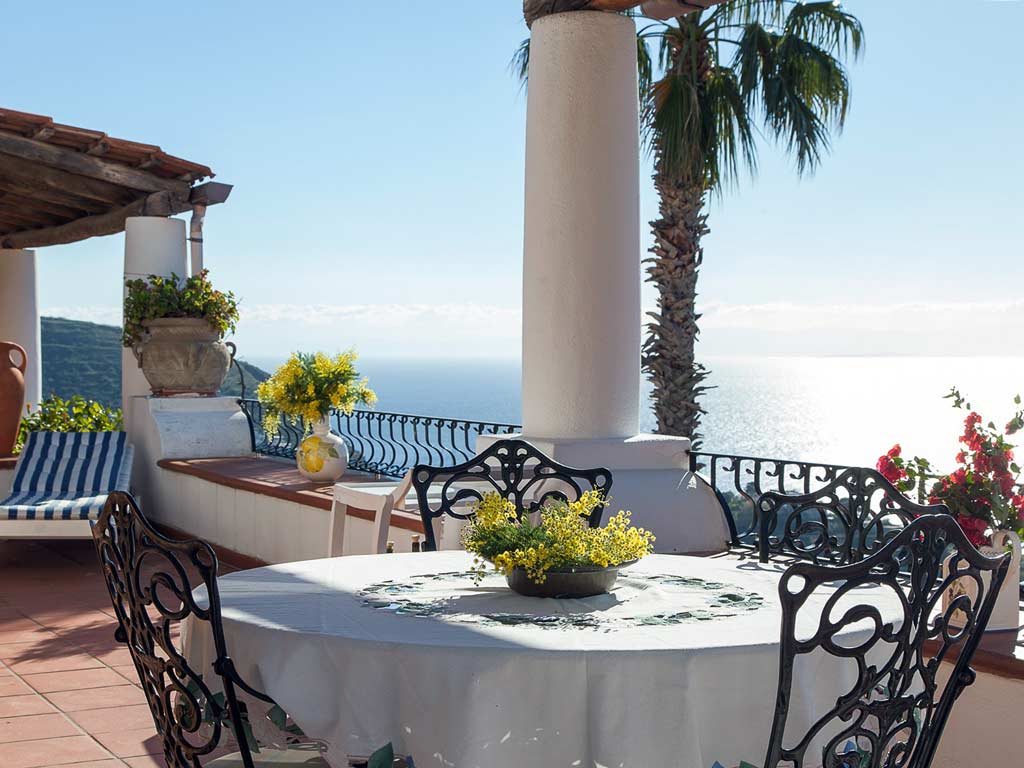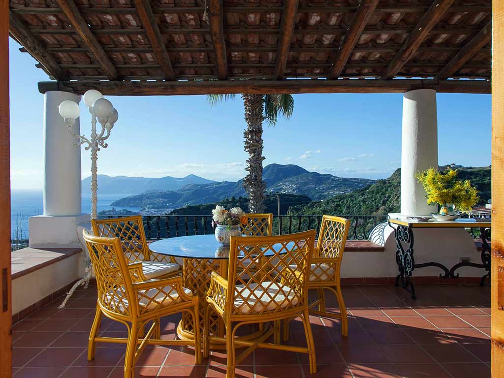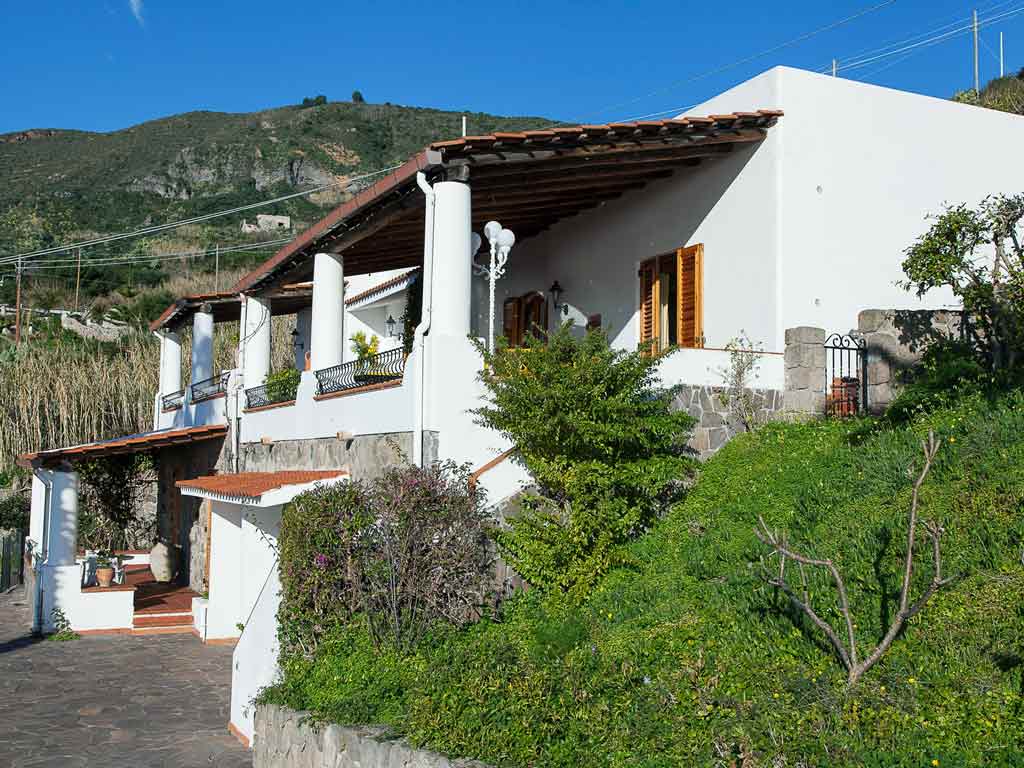 La "Villa Anna" in affitto sull'isola di Lipari si trova in una posizione con un panorama mozzafiato. Dai terrazzi della villa, oltre che il centro di Lipari, è possibile gustare della vista dell'isola di Vulcano.