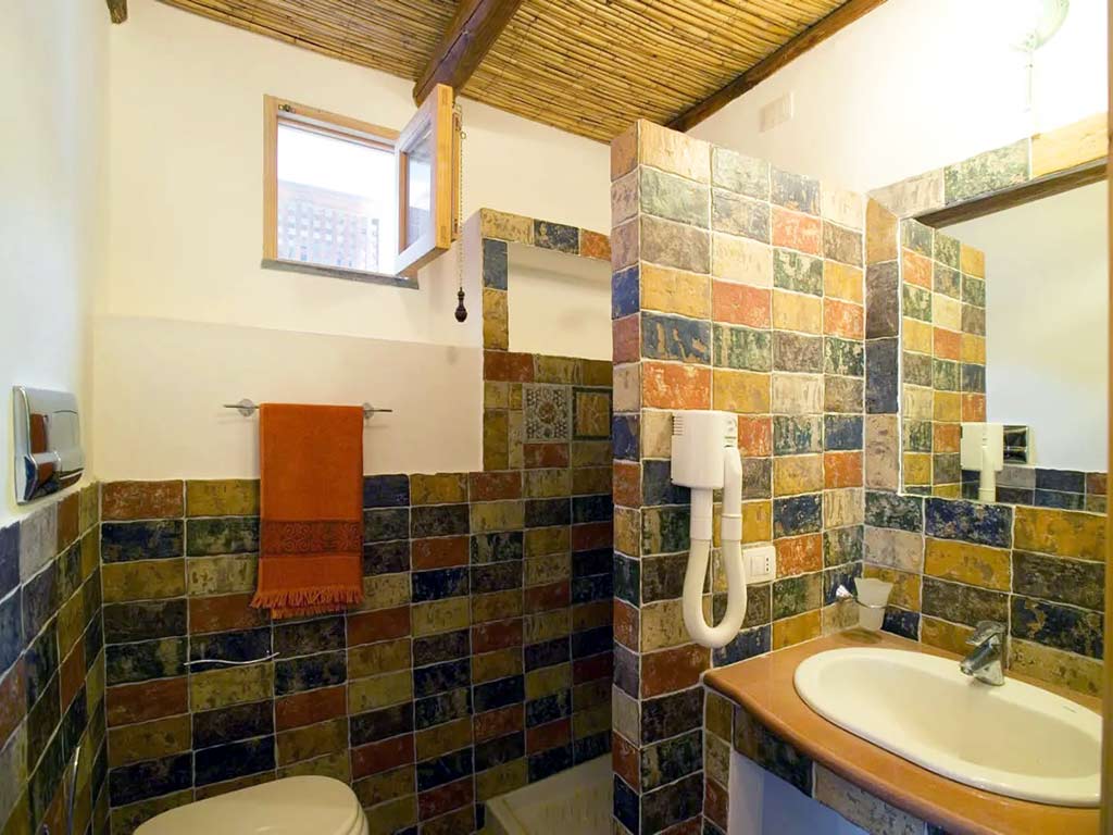 Attraverso porte-finestre, che si affacciano su un tipico terrazzo , si accede alle due camere da letto matrimoniali con entrata indipendente , tv color, climatizzatore e frigo-bar.