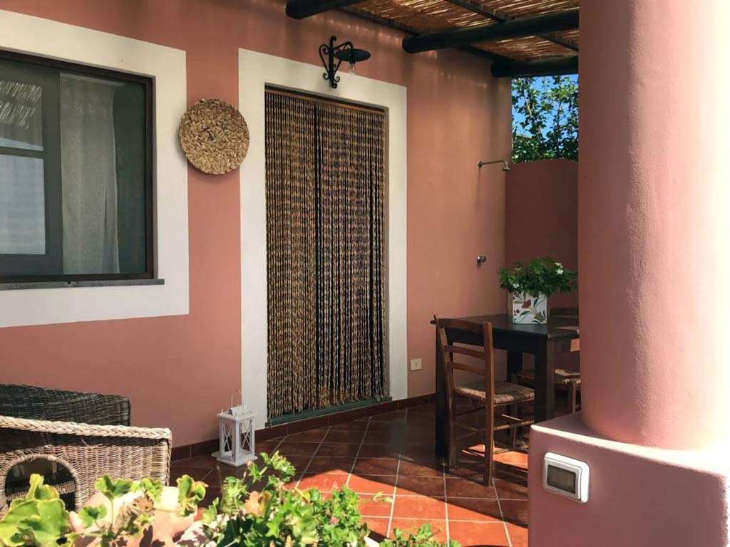 Il terrazzo panoramico è coperto ed attrezzato di tavolo e sedie,vi è doccia esterna .Vi è anche la possibilità di avere delle convenzioni per il noleggio auto/scooter.