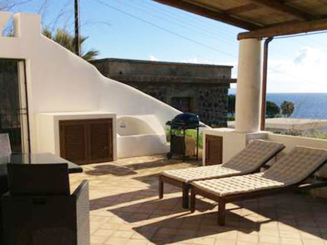 Il terrazzo vista mare e' arredato con salottino e tavolino e tavolo e sedie per i vostri pranzi all'aperto. Sono inoltre presenti un dondolo, lettini prendisole, barbecue e spazio verde di pertinenza. Il bagno è completo con doccia.