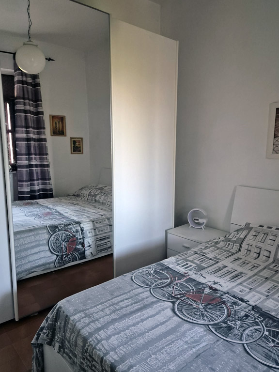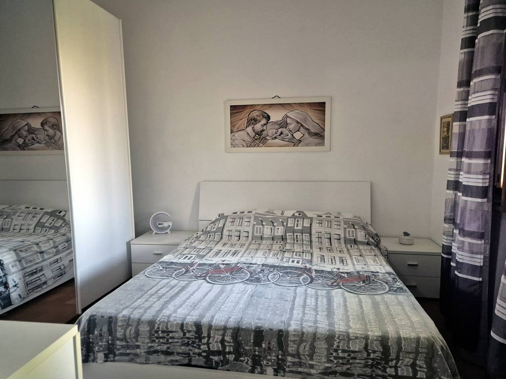 La camera da letto matrimoniale ha un'ampia finestra con zanzariera che si affaccia sul terrazzo. È dotata di aria condizionata.