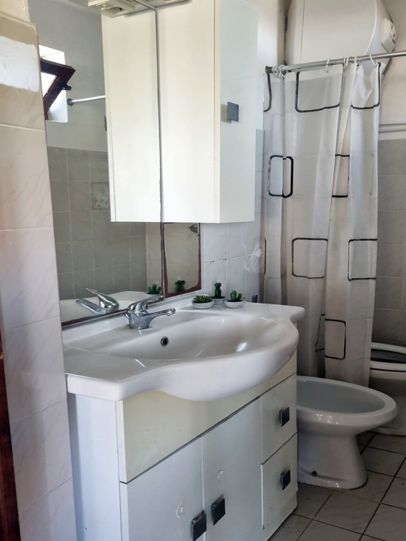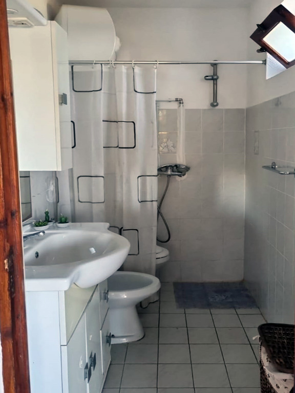 The bathroom is with shower, and you can enter trough a door on the terrace.