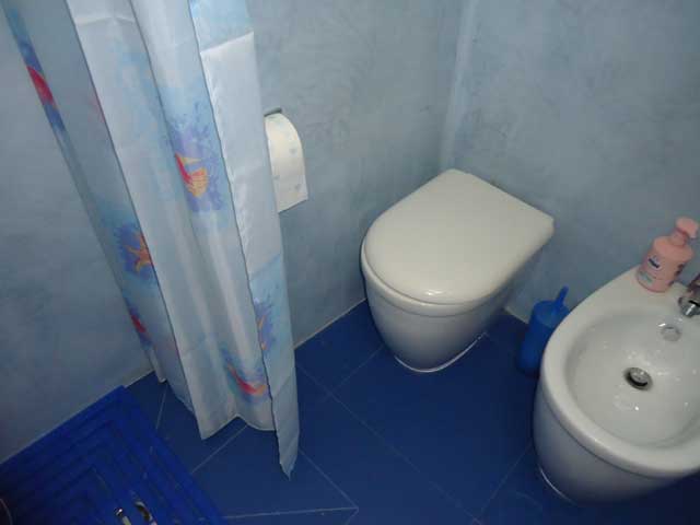 La toilette completa con doccia , phon ed ha una finestra alta.