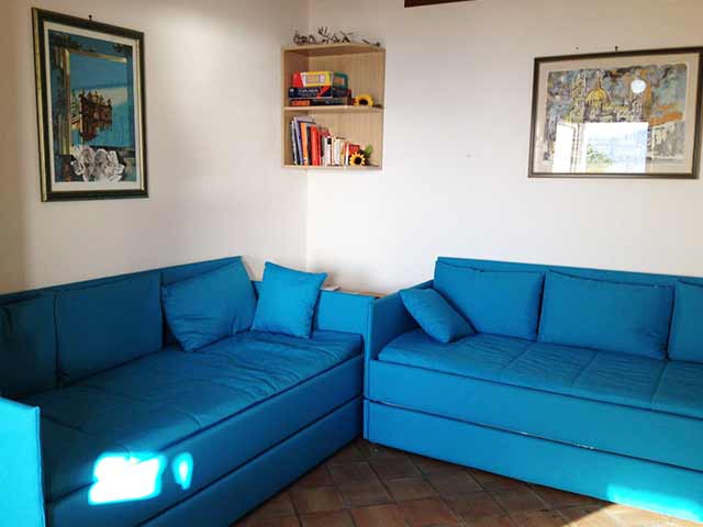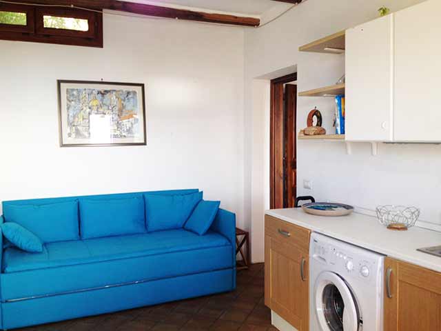 The kitchen-living room which has a separate entrance from the terrace, it is full equipped with a 4 burner gas stove and small fridge. Here there are two single sofa beds.