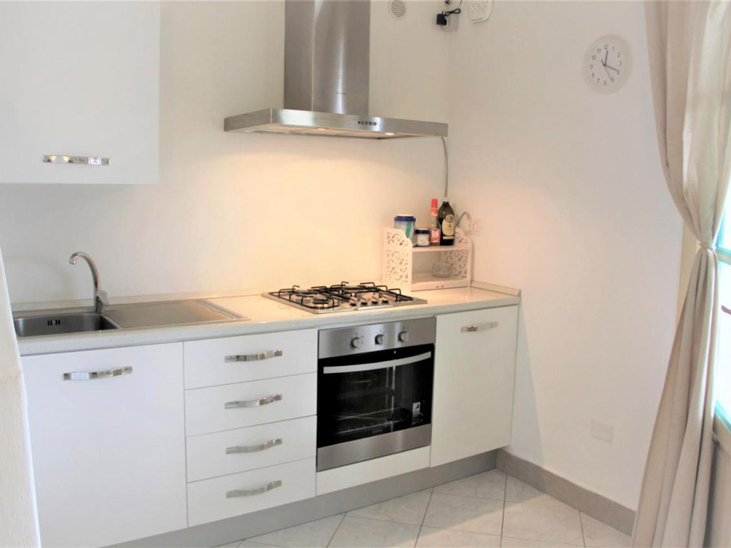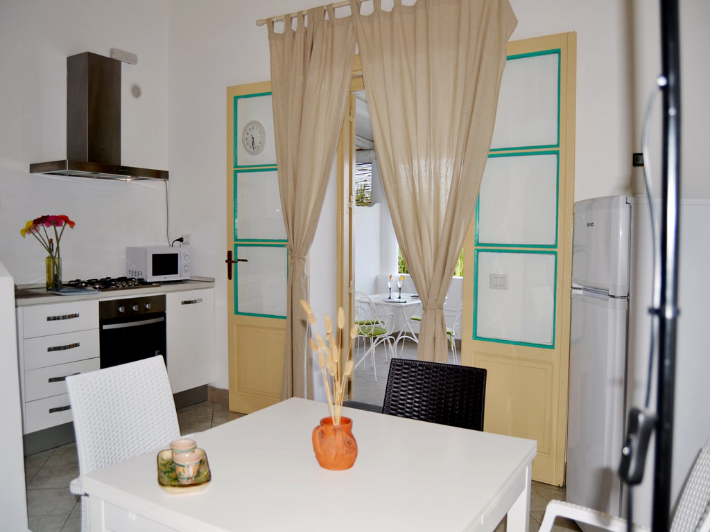 L'ingresso avviene passando dal terrazzo coperto con accesso diretto alla luminosa zona cucina-pranzo. Separata da un arco vi è la zona cucina ben attrezzata e funzionale dotata di forno elettrico, frigorifero, freezer, tavolo allungabile, credenza, dispensa.