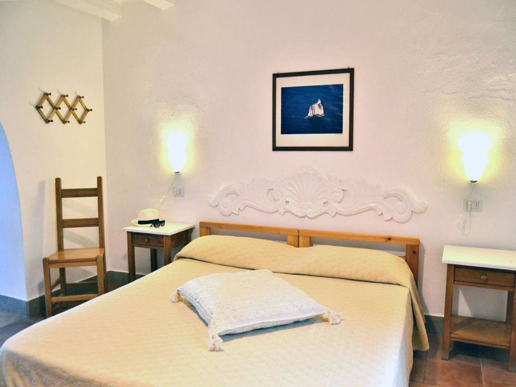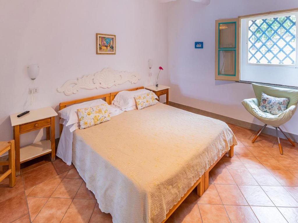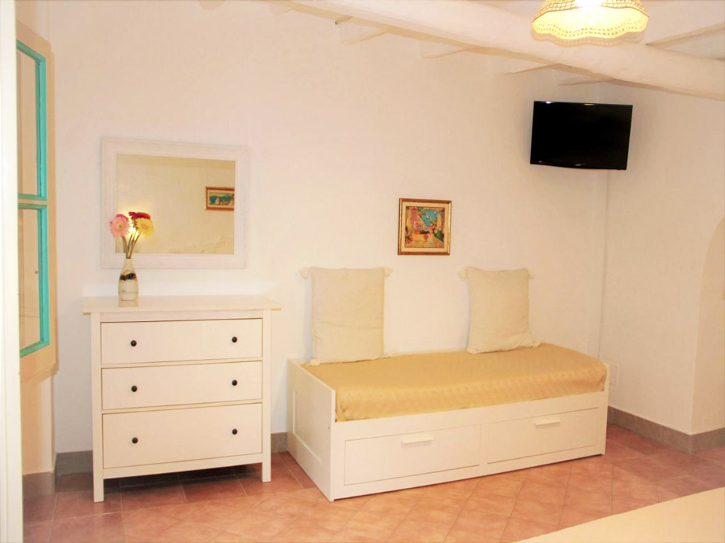 Dal salone si arriva alle due camere da letto. La prima camera quadrupla è ampia e si trova al piano superiore, mentre la seconda spaziosa camera da letto è al primo livello. Ambedue dispongono di aria condizionata e TV Led.