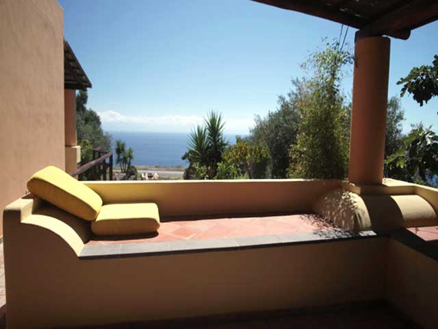 VILLA EOLO : Junior suite composta da due vani, una camera da letto e una zona soggiorno corredata da divano letto, ampia cucina con forno e frigorifero e ampia terrazza in posizione panoramica con vista mare caratterizzata per i particolari sedili in muratura, chiamati “bisola”, con ceramiche che richiamano i disegni tradizionali. L’arredamento interno oltre a rispettare lo standard della struttura, regala all’ospite la possibilità di godere di autentiche sculture lignee realizzate appositamente per il residence. Non possono mancare anche qui il condizionamento autonomo, un giardino ricco di piante, un barbecue privato e una doccia esterna.