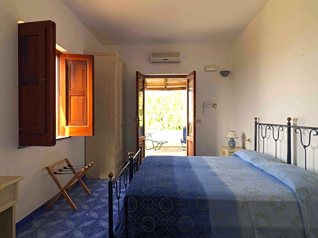Si tratta di camere rinfrescate dall'abbondante vegetazione che le circonda e dagli spessi e candidi muri tipici delle Isole Eolie. Le stanze che affacciano su una terrazza panoramica con vista mare, sono dotate, nella loro semplicità, di ogni agio: bagno in camera con doccia e phon, tv, climatizzatore e frigo bar. Ogni mattina, oltre alla pulizia della camera, viene cambiata la biancheria da bagno.