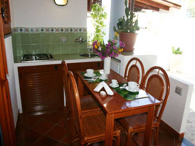 Oltre alle camere, la struttura offre anche deliziosi appartamenti : monolocali, tutti finemente arredati vanno da 2 a 4 posti letto; ognuno di questi è dotato di tutti i confort per una vacanza all'insegna del relax : televisore satellitare, climatizzatore, frigo, bagno con doccia, e cucina completa di accessori ricavata sul terrazzo coperto.