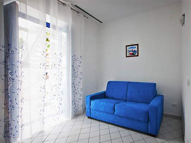 - Rif. PO: camera di 32 metri quadri da 2 a 4 posti letto con soggiorno. La camera si affaccia sul giardino interno.