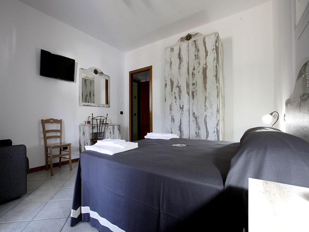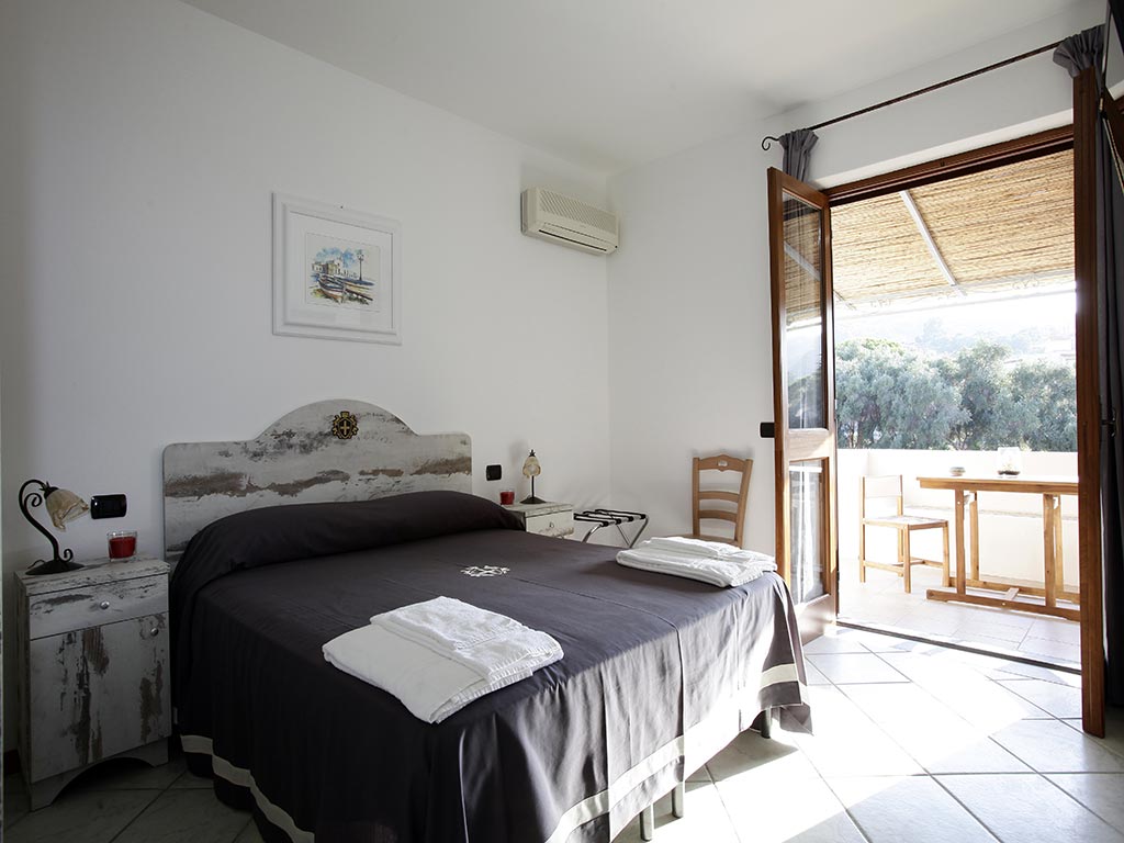 La camera che si affaccia sulla via principale di Lipari è una Suite da 4 posti letto, mentre le altre 3 camere di Tipo Standard, doppie e triple, si affacciano sul "Parco Archeologico di Diana".