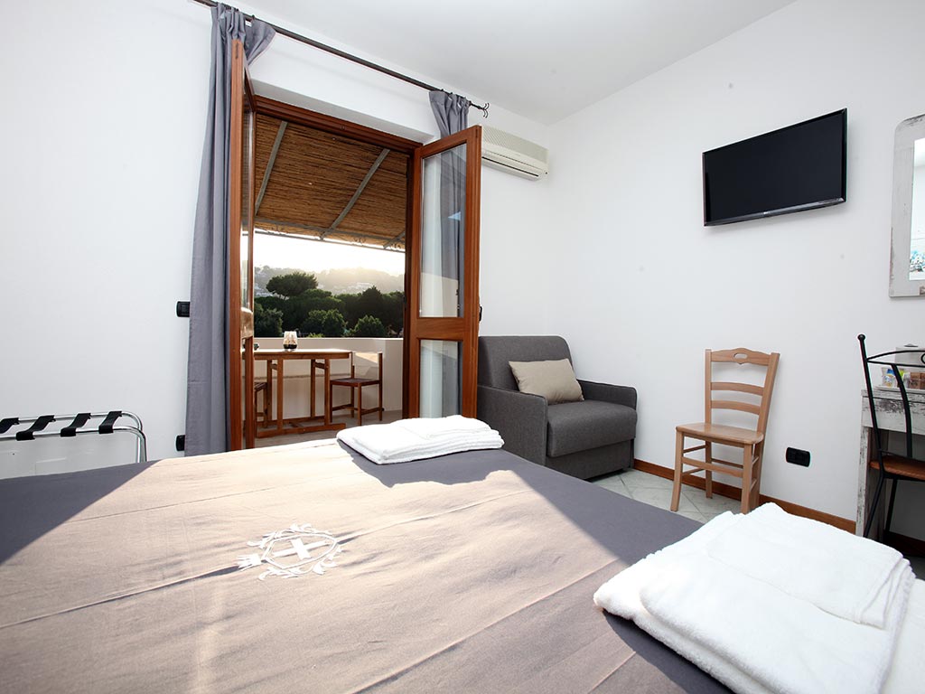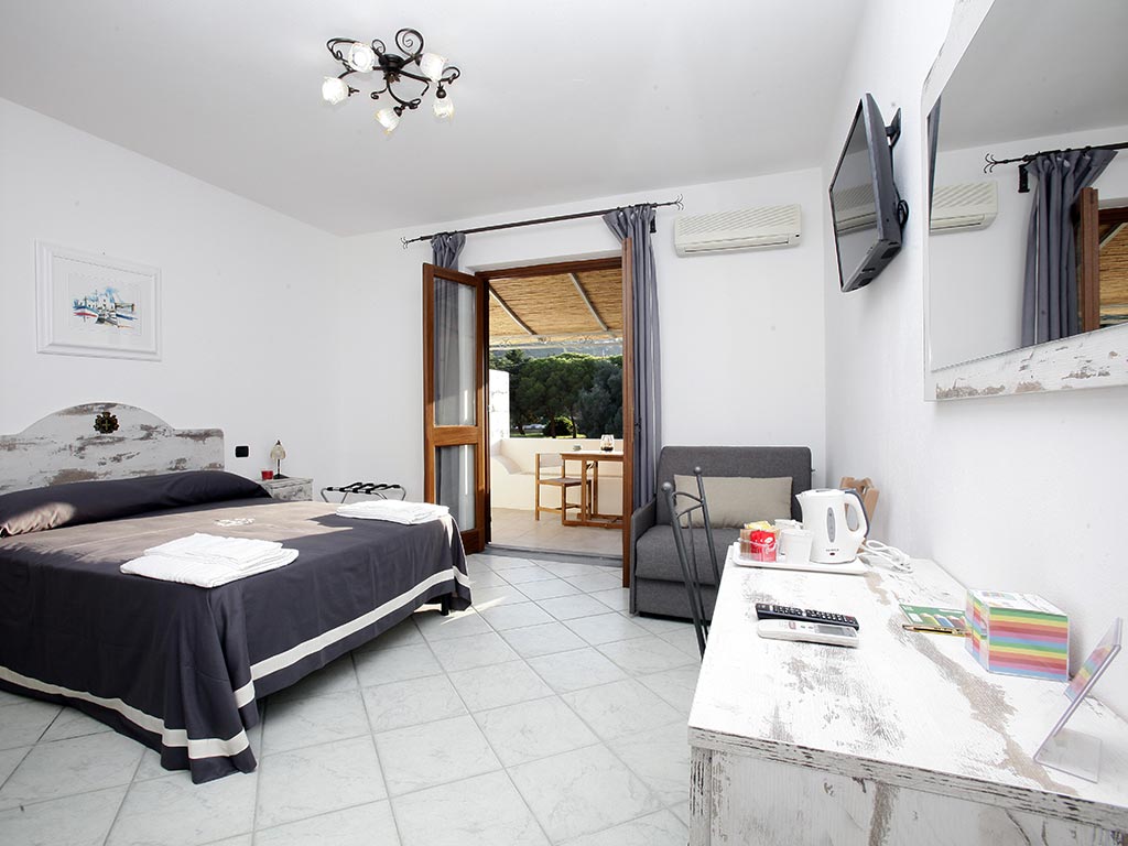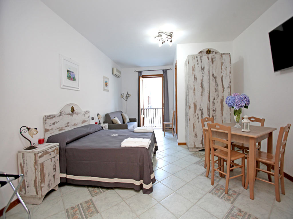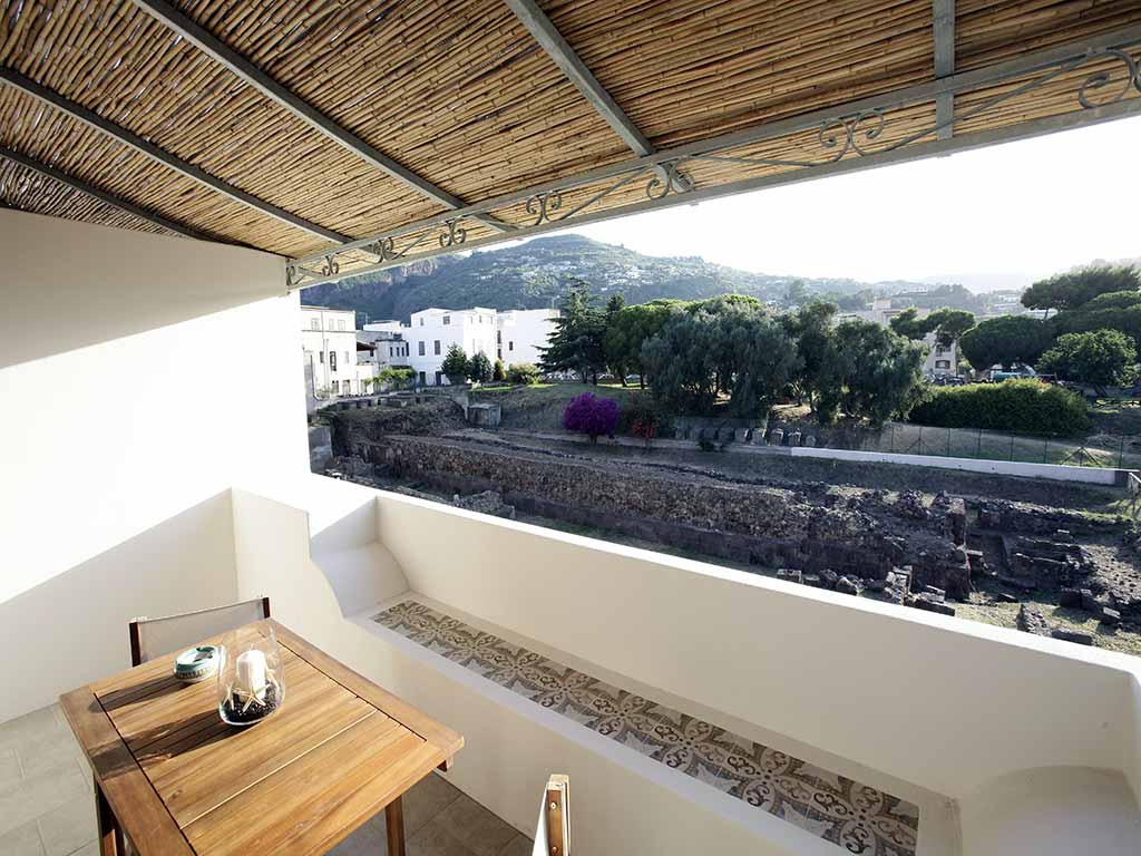 The room overlooking the main street of Lipari is a 4-bed suite, while the other 3 standard double and triple rooms overlook the "Diana Archaeological Park".