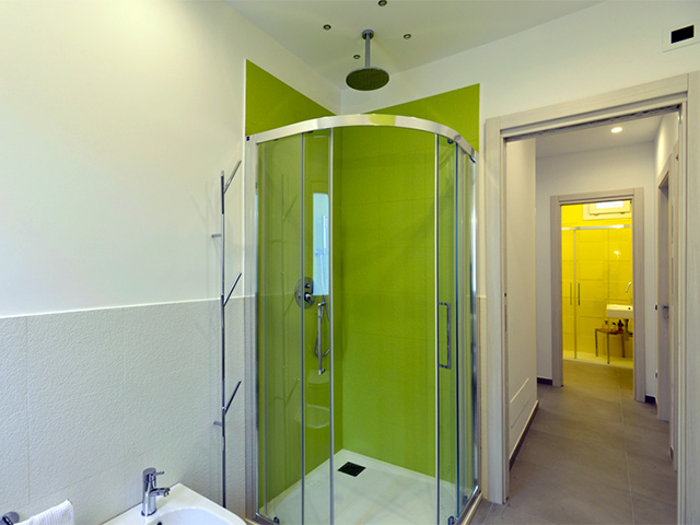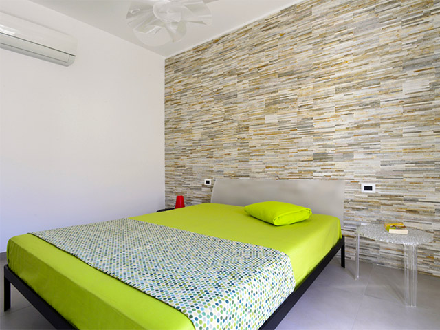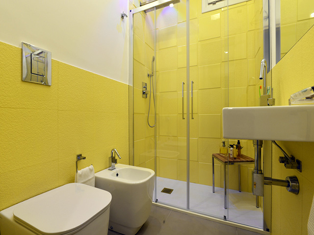 E' composto da due camere da letto matrimoniali, due bagni con doccia emozionale con cromoterapia, cucina soggiorno con divano letto matrimoniale. Ha finiture di livello superiore e arredi eleganti di qualità italiana.