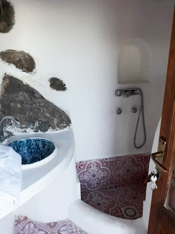 The bathroom, outside the main building accessible through the private courtyard of the same house, is complete with everything and has a brick shower.