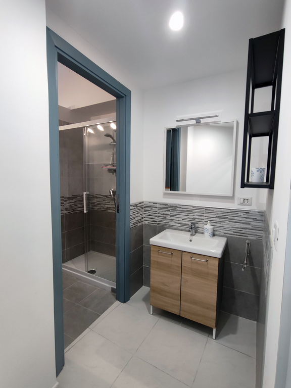 Il bagno, dotato di antibagno, è completo di tutti i sanitari ed ha ampio box doccia in muratura. C'è aspiratore d'aria.
