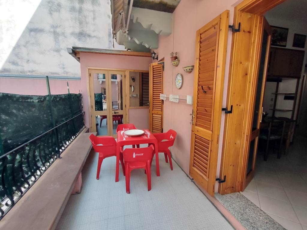 Il terrazzo, anche se non molto ampio, è attrezzato con tavolo e sedie oltre ad essere munito di una seduta in muratura e permette di godere di momenti di relax vista la sua posizione interna che lo nasconde alla strada.