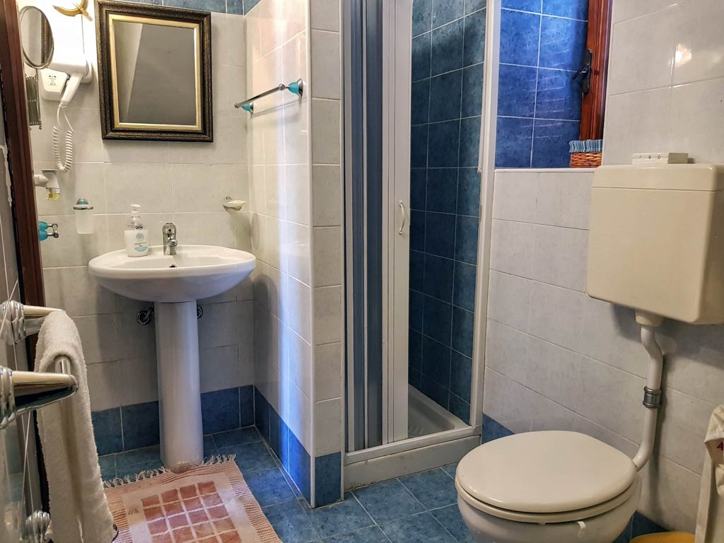 Il bagno completo di tutti i sanitari ha box doccia e asciuga capelli.