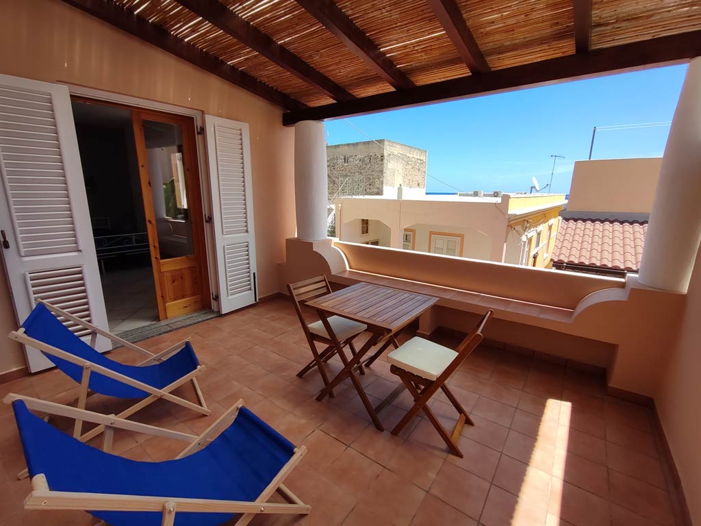 Il terrazzo è ampio e semi panoramico attrezzato di tavolo e sedie ed anche di sdraio.