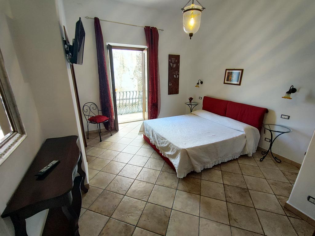 Al primo piano si trova la prima camera da letto matrimoniale con balcone che da sulla piazzetta; la camera è servita da bagno completo con box doccia e finestra.