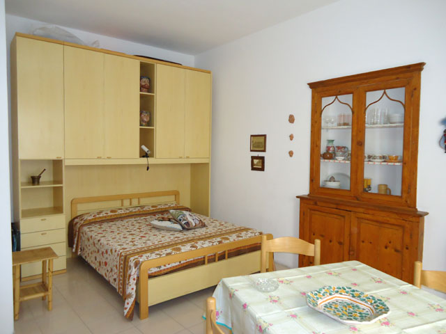 L'appartamento è un funzionale monolocale con letto matrimoniale, ampio armadio, un mobile cucina a 2 fuochi accessoriato, aria condizionata, Tv e ventilatore. Possibilità di terzo letto per bambini fino a 10 anni