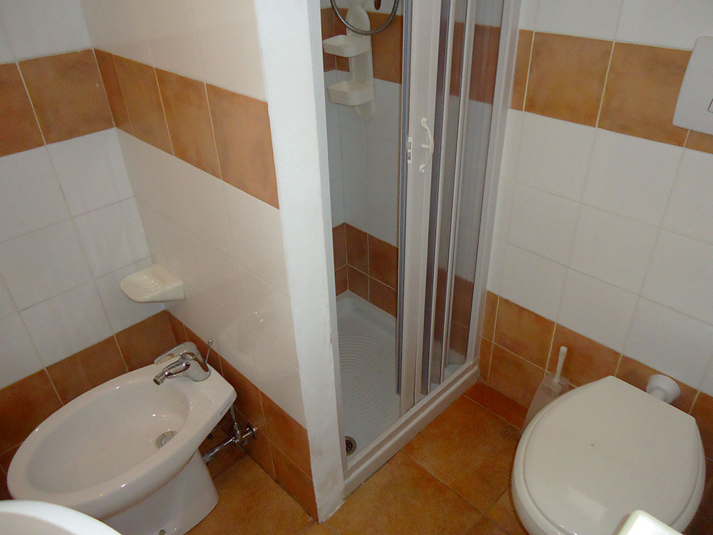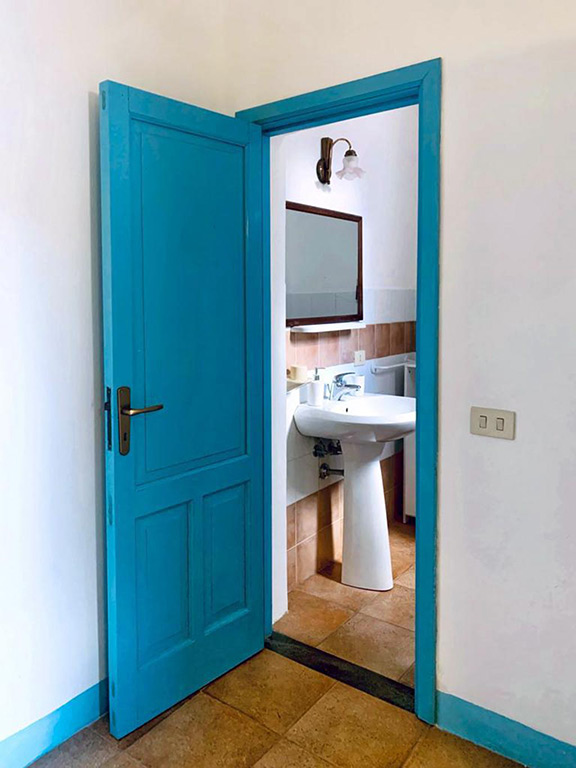 La toilette è completa con doccia in muratura e piccola finestra interna.
