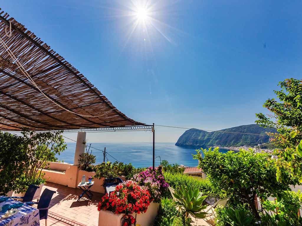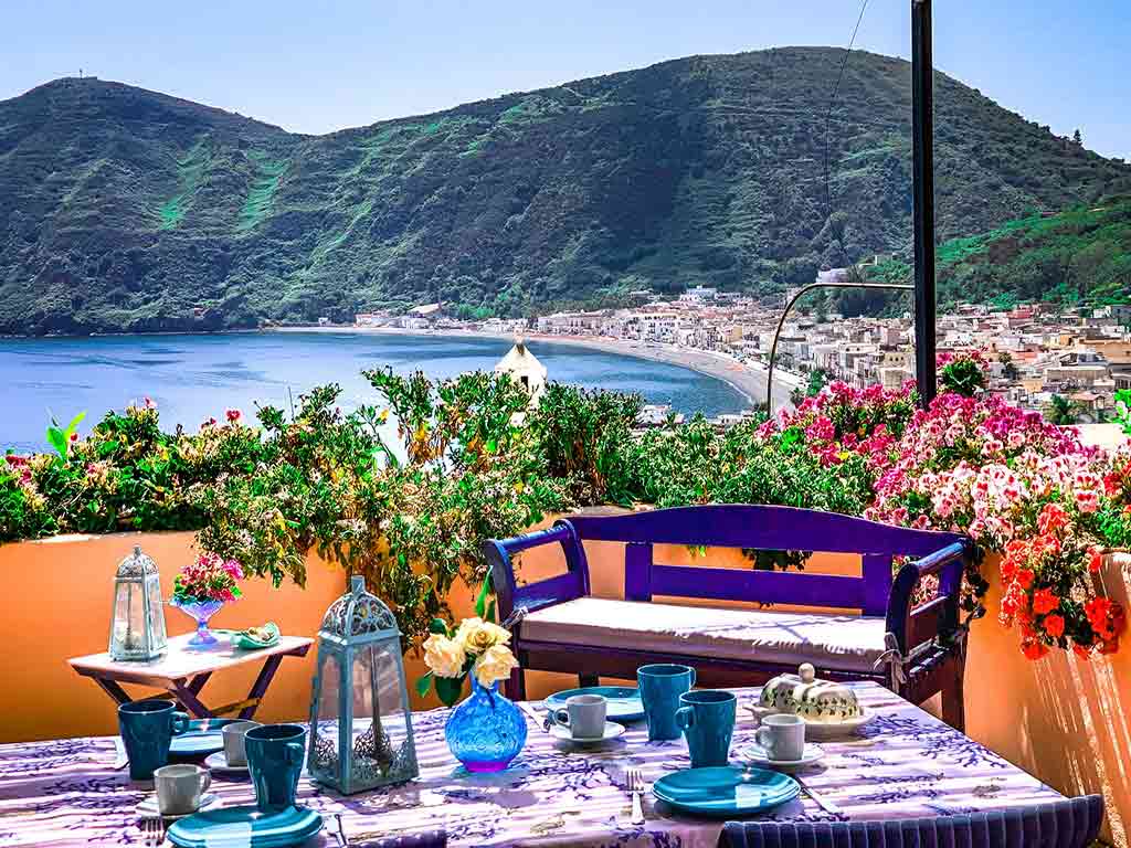 The terrace equipped with table and chairs, panoramic to enjoy the enchanting scenery of the Bay of Canneto, bathing the island of Lipari, equipped with many amenities such as bars, restaurants, shops, supermarkets, lidos, rentals, etc ...