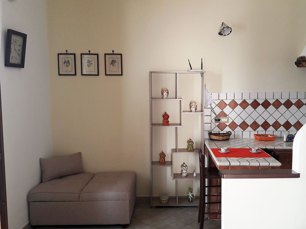 E' composta da una cucina soggiorno con letto matrimoniale e divano letto singolo, TV ed aria condizionata e Wi-Fi. La zona pranzo è divisa dalla zona letto con un separè in muratura.