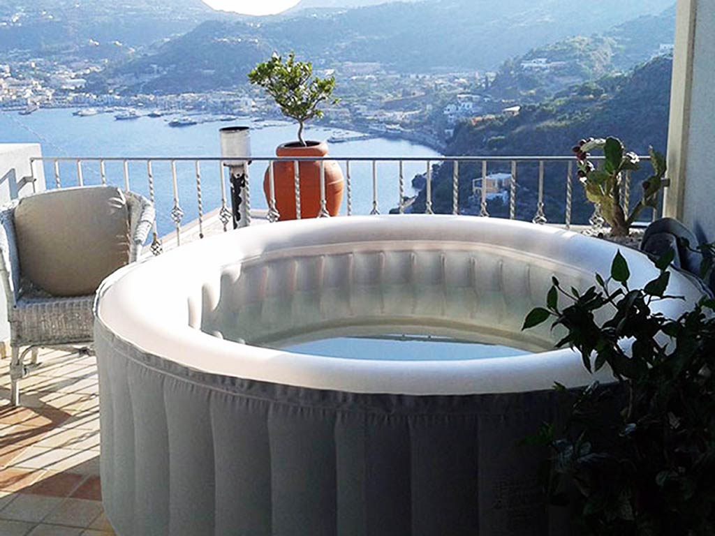La villa ha accesso da un terrazzino d'ingresso panoramico dove è posizionata una vasca idromassaggio che servirà per i vostri momenti di relax.