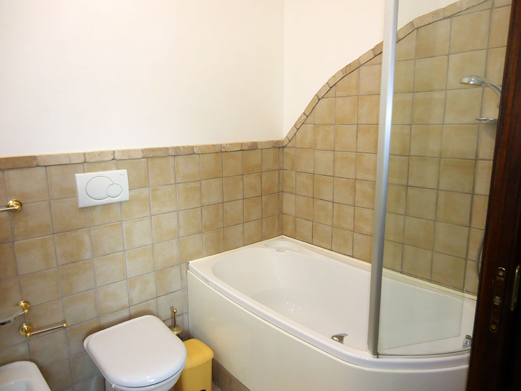 Il bagno è completo di tutti i sanitari ed è dotato di vasca-doccia.