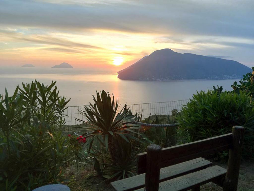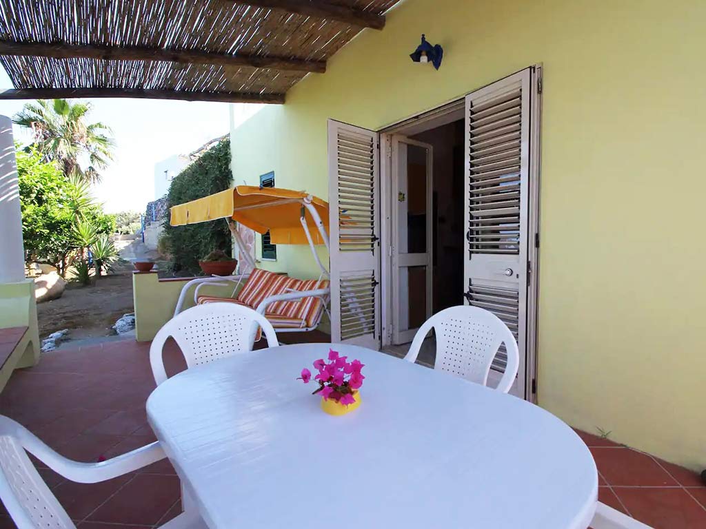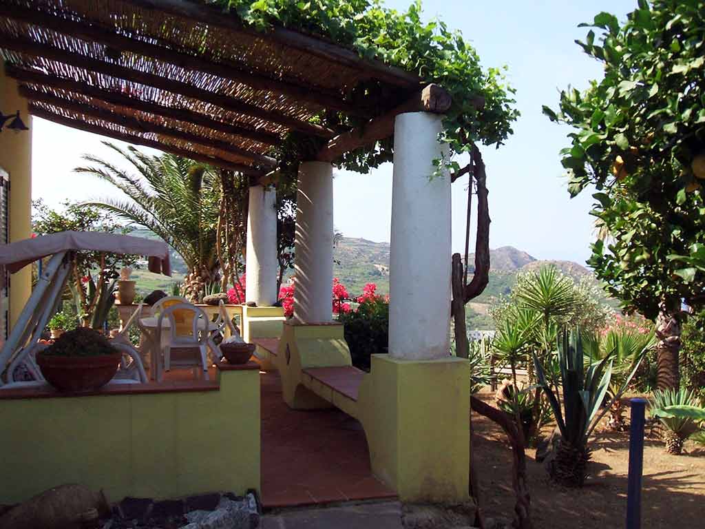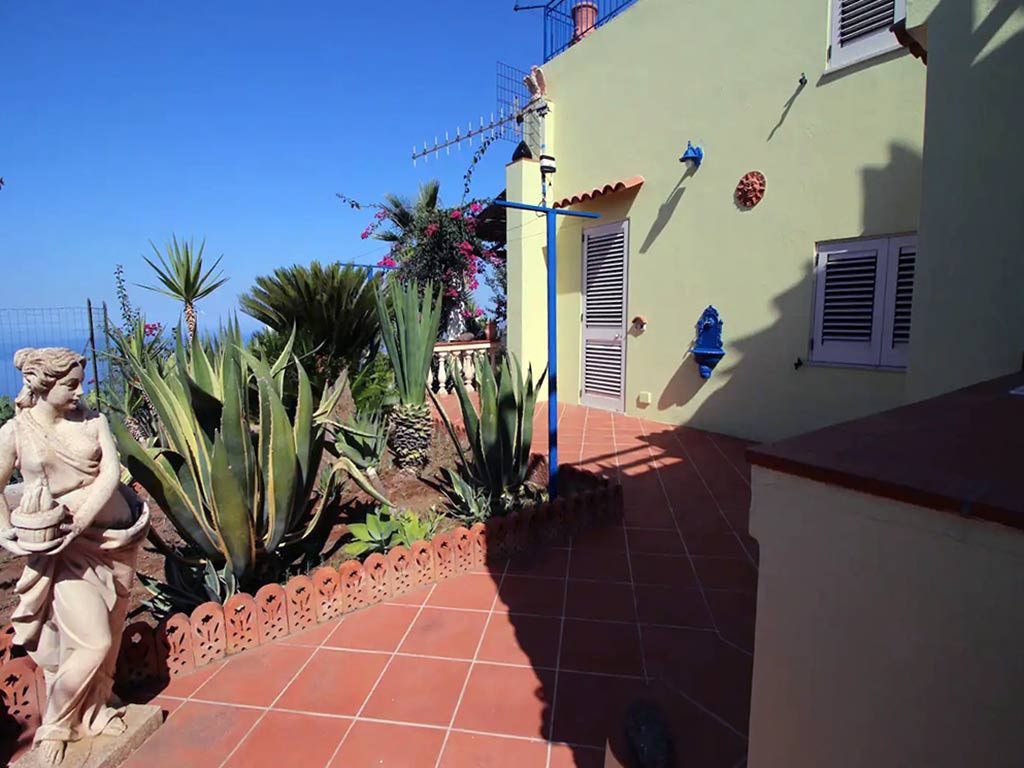The villa has a splendid panoramic terrace overlooking the islands of Salina, Filicudi and Alicudi. Part of this terrace is covered and equipped with table and chairs and swing. From here it is possible to admire fantastic sunsets.