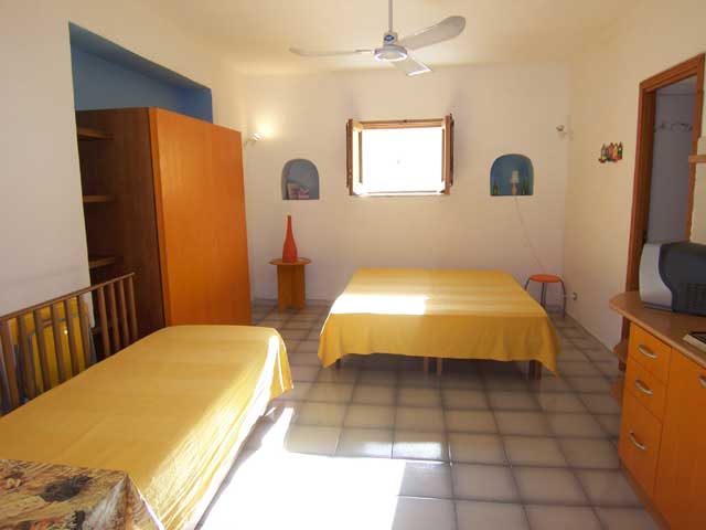 > Casa Azzurra (posti 2+2) è anch'esso un monolocale rilassante e colorato con divano letto matrimoniale, mobile letto doppio(con 1 letto estraibile, da conteggiare extra su richiesta ) e angolo cottura attrezzato in legno. E' dotato di un tv color, ventilatore a soffitto e di una panoramica finestra vista mare.