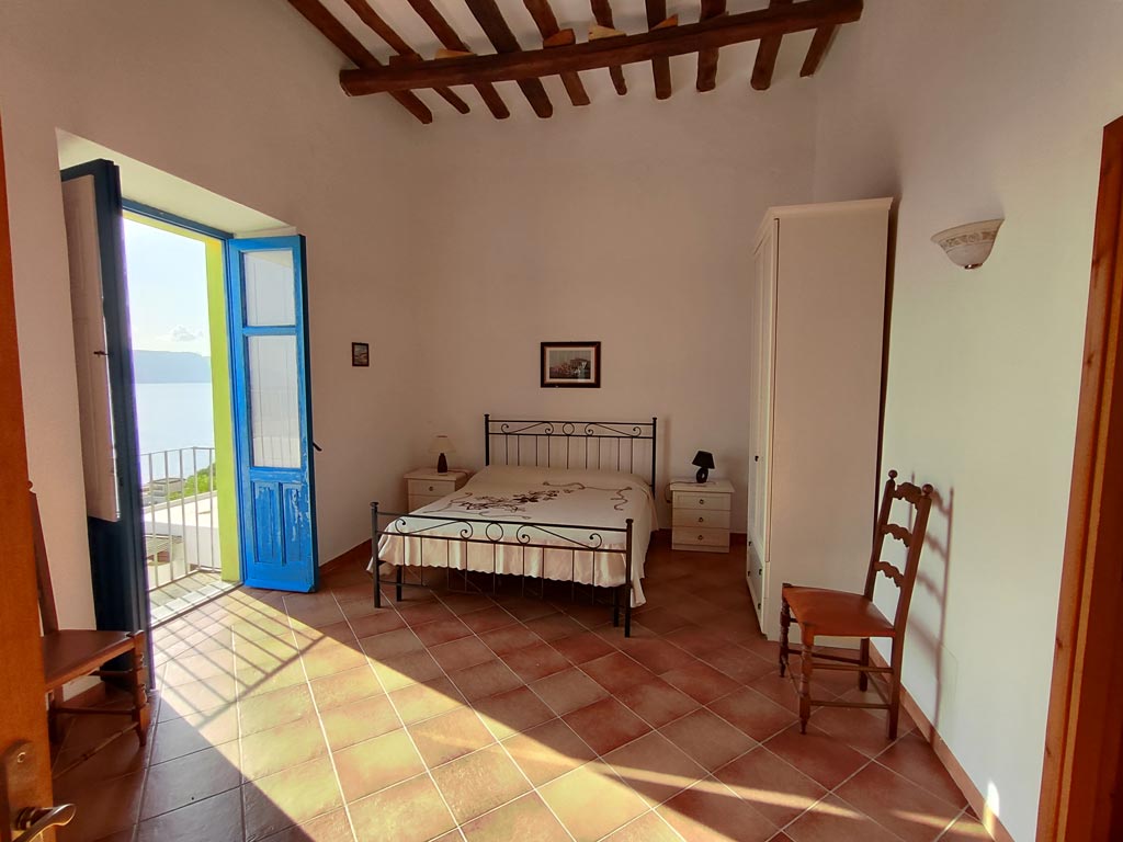La camera ha letto matrimoniale, balcone panoramico con vista sul mare e sulle isole di Lipari, Panarea e Stromboli, Aria Condizionata e TV.