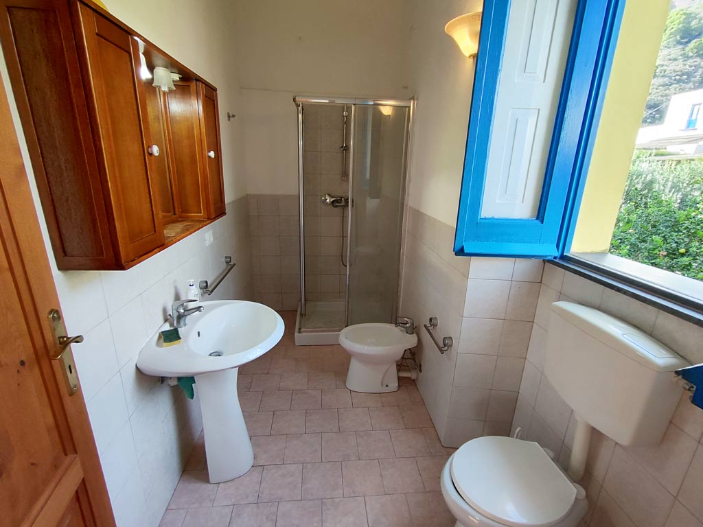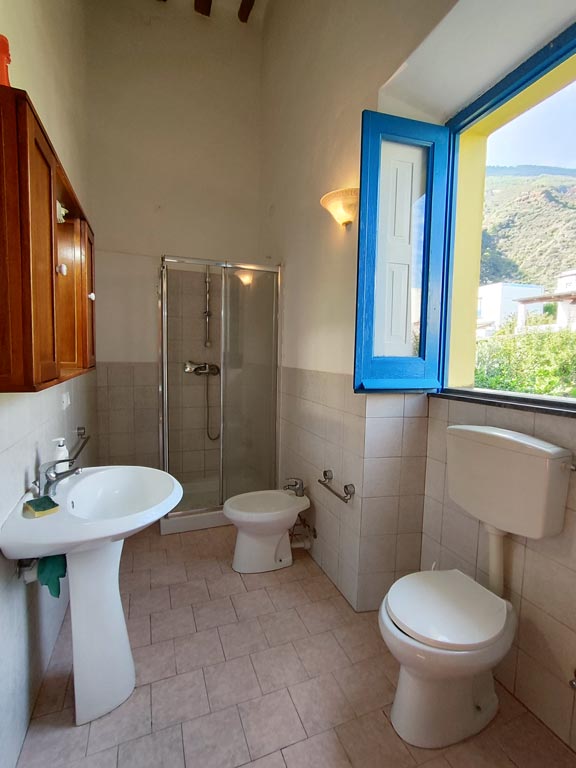 Il bagno, interno alla camera da letto, è completo di tutti i sanitari ed ha box doccia e finestra con affaccio sul retro.