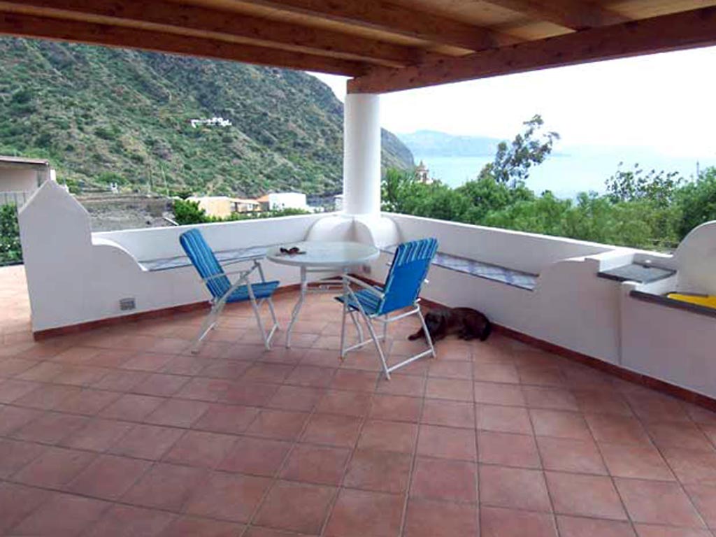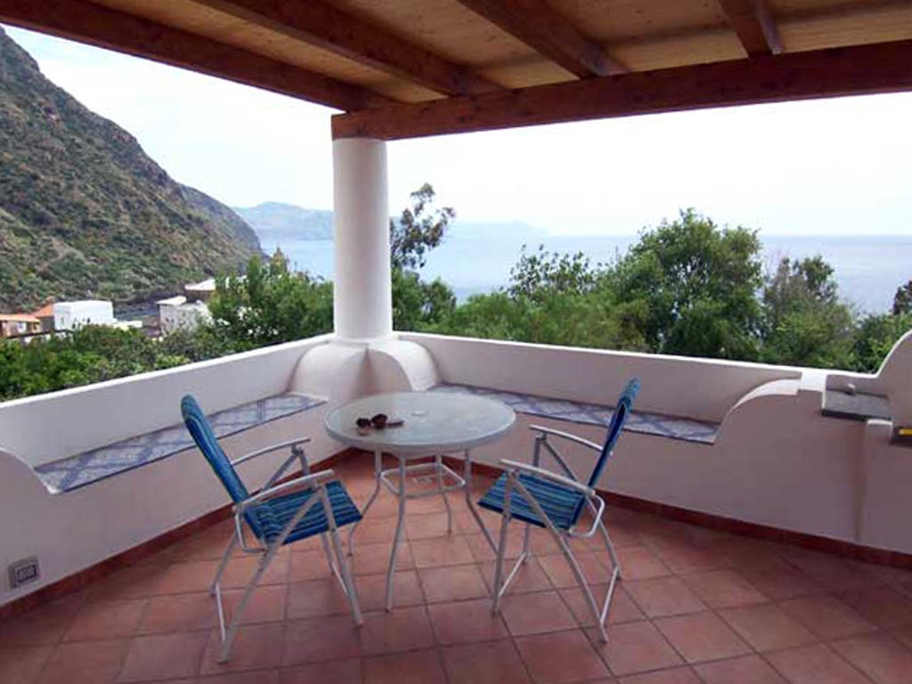 La Pergola is the classical aeolian house with covered terrace and a view on the sea and islands of Lipari and Vulcano.