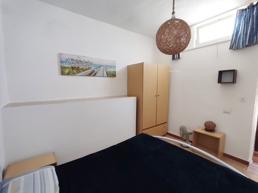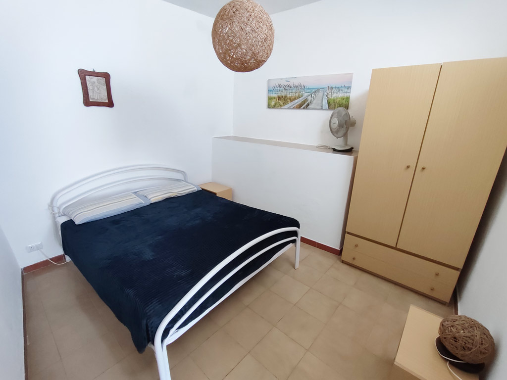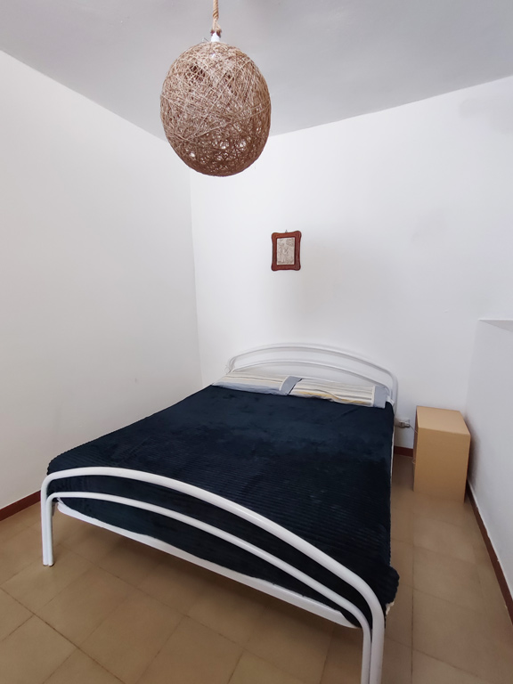 Da questa zona si accede mediante dei gradini alla camera con letto matrimoniale e armadio, ventilatore da tavolo e finestra alta. La camera ha accesso indipendente anche dal terrazzo.