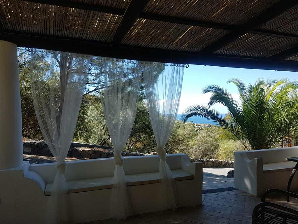La casa ha uno splendido terrazzo panoramico coperto con tettoia in tipico stile eoliano ed è attrezzato con tavolo e sedie e sdraio. Da qui si gode di un panorama con vista su tutto il paese di Malfa.