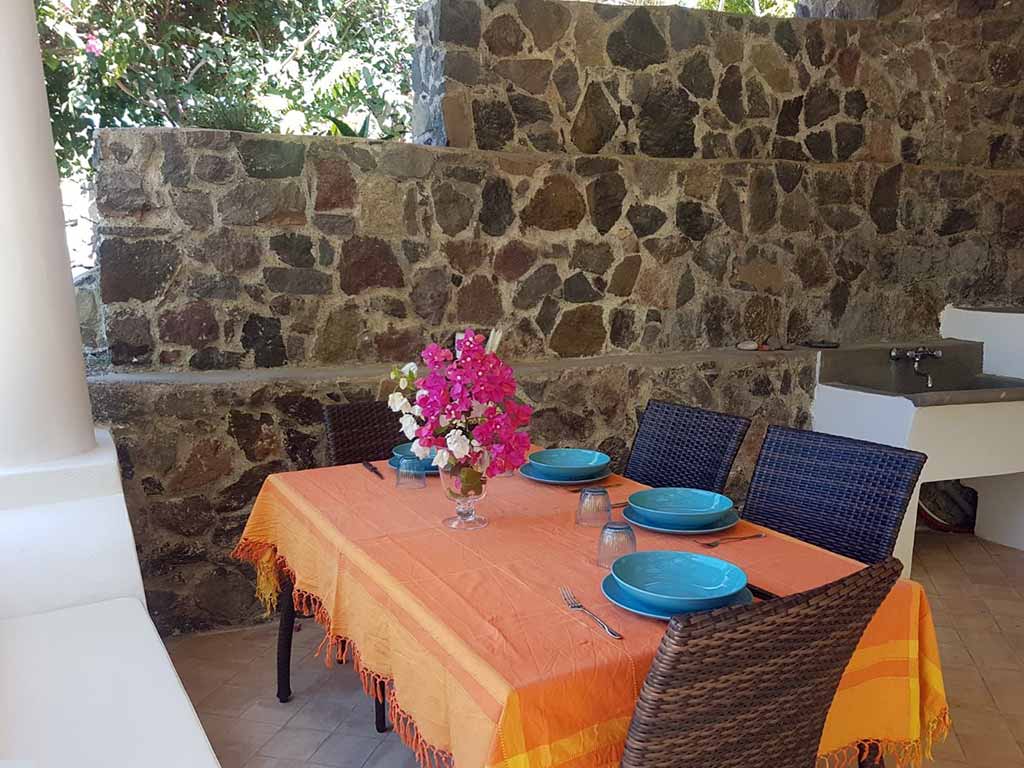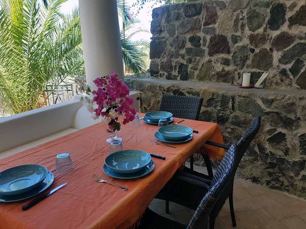 The "Villetta Valentina" holiday home for rent on the island of Salina, in the municipality of Malfa, is a villa that has maintained the typical Aeolian style, even after the renovation in 2018. The owners wanted to keep some typical details such as the stone walls.
