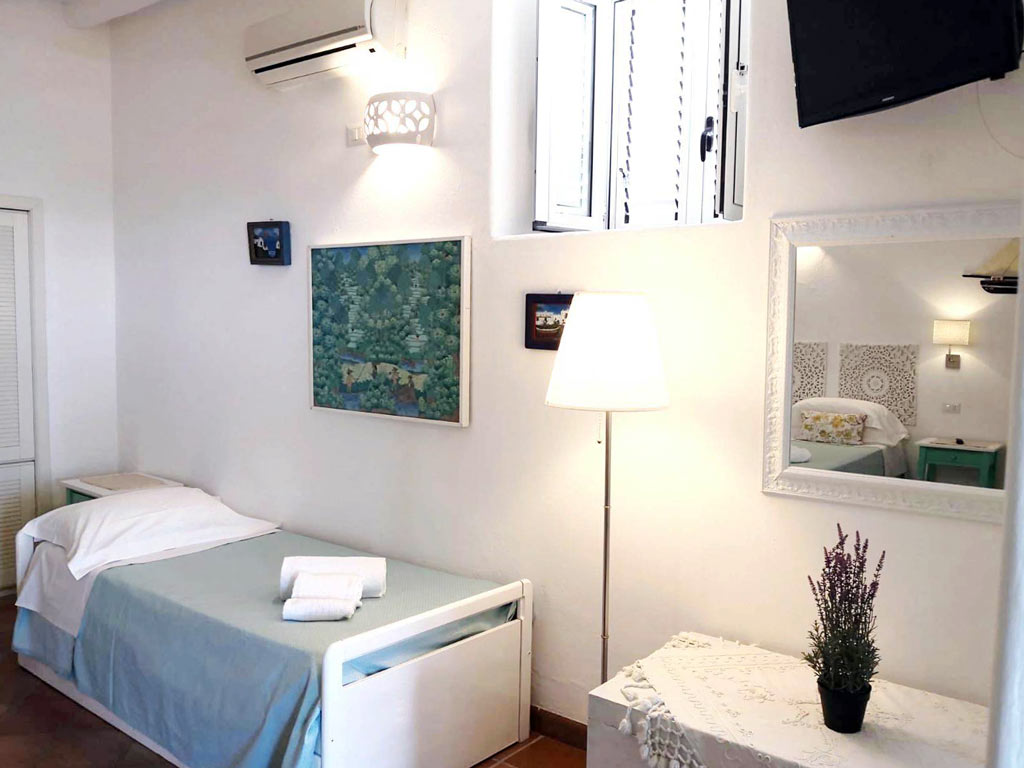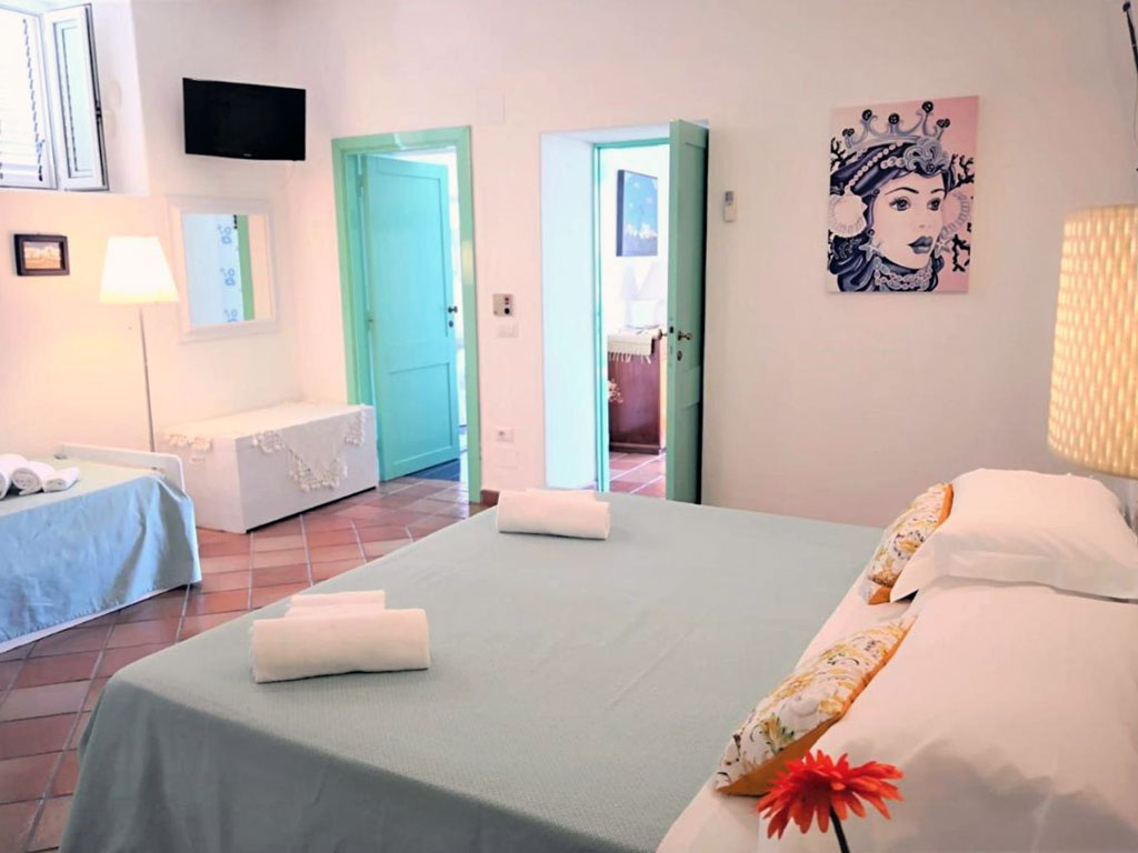 Dal salone è possibile arrivare alle due camere da letto entrambe con wc interno ed aria condizionata. La prima ha letto matrimoniale, pale a soffitto tv e wc, la seconda ha letto matrimoniale più divano letto doppio, pale a soffitto tv e wc.