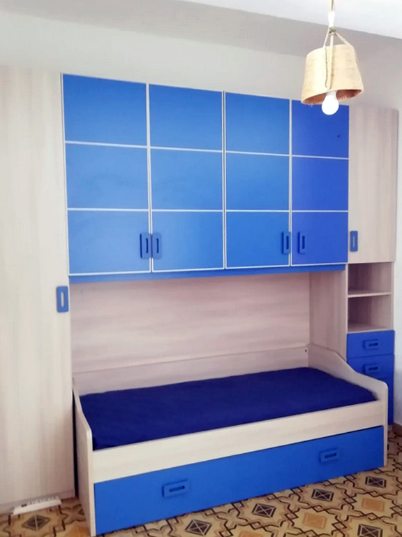 Nella zona soggiorno vi è un armadio a ponte dove alloggia il divano, trasformabile in letto singolo più ulteriore letto estraibile.