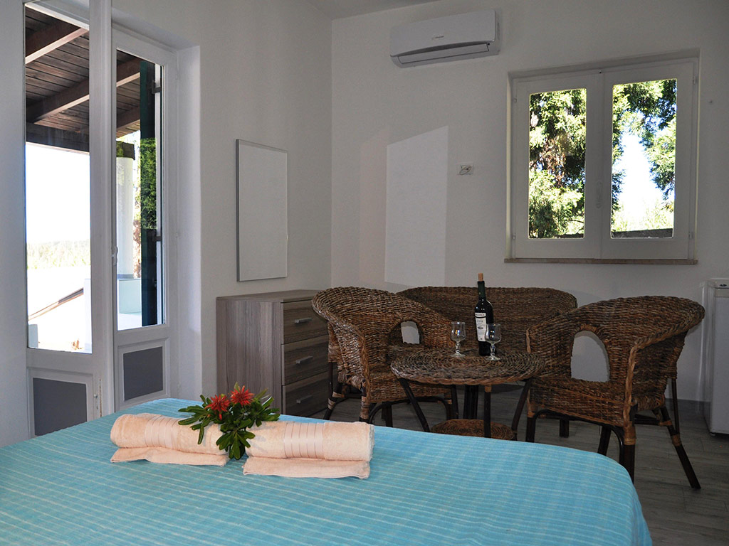 Gli appartamenti, il cui tipico stile eoliano si inserisce armoniosamente nella naturale conformazione dell’isola, coniugano il fascino dei luoghi ancora selvaggi e silenziosi al comfort di un soggiorno full optional.